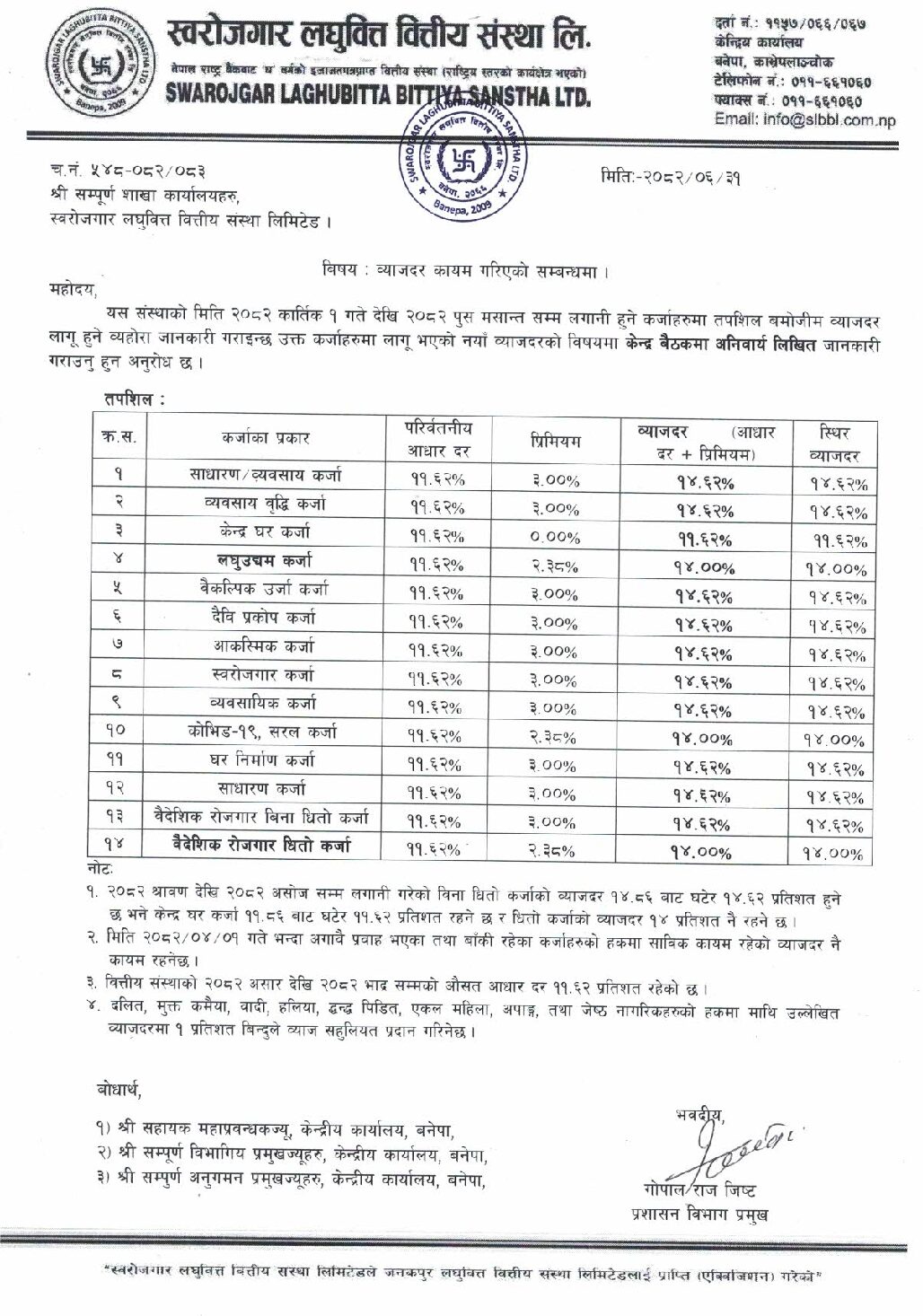 स्वरोजगार लघुवित्त वित्तीय संस्था लिमिटेड Swarojgar Laghubitta Bittiya